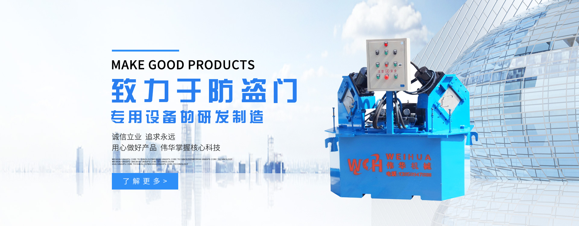 更多>溫州偉華機械制造有限公司地處浙江溫州瑞安市塘下工業區,創建于2009年,數年來全心致力于防盜門專用設備的研發制造,主營產品有:門面成型機、門框成型機、熱壓膠合機、組合沖床、液壓折邊機、雙頭沖床、門面開平機?,F已具備獨特的管理模式和產品開發能力,歷經多年的努力,現已發展成為國內最具影響力的機械設備企業之一。